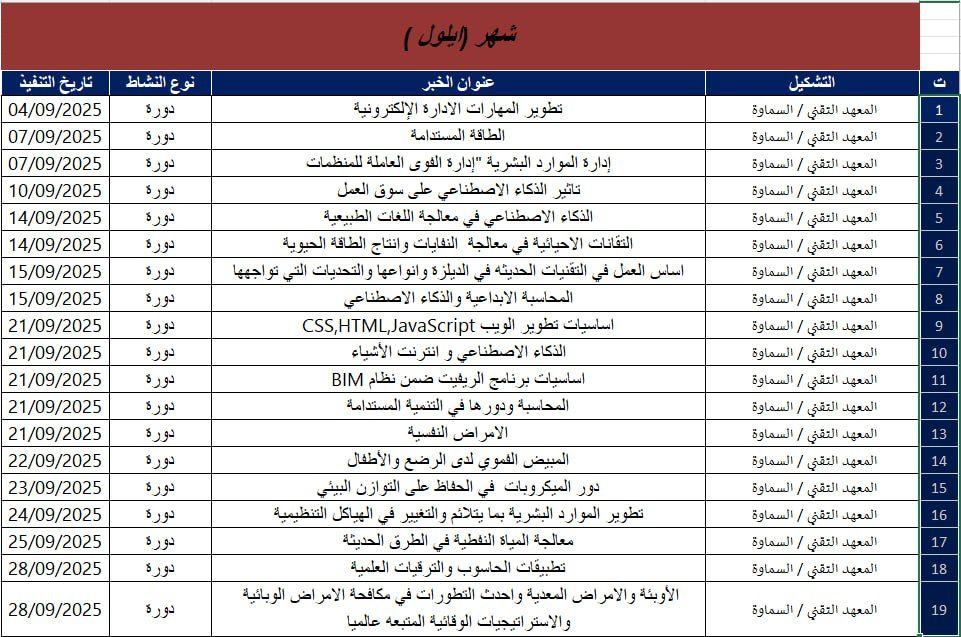 جامعة الفرات الأوسط التقنية تنظم دورة تدريبية بعنو... ضمن خططها العلمية وبرامجها التثقيفية الهادفة إلى نشر الوعي البيئي وتعزيز مفهوم الاستدامة، نظّم قسم تقنيات صحة المجتمع في المعهد التقني/سماوة أحد تشكيلات جامعة...