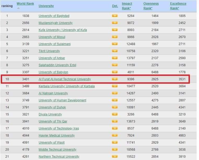 أعلن السيد رئيس جامعة الفرات الاوسط التقنية الاستاذ الدكتور مظفر صَادِق الزُهَيْري أن الجامعة حصدت مركز متقدم ضمن الإصدار الأخير لتصنيف وبماتريكس إذ حصد موقع ا...