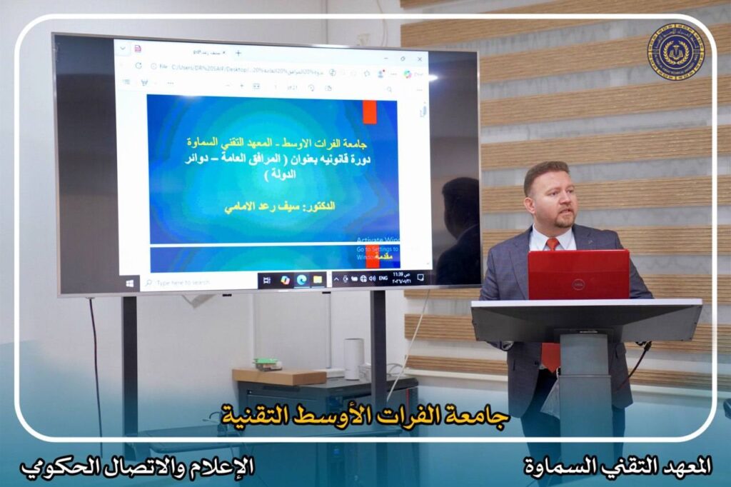 أقام قسم حفر وإنتاج النفط في المعهد التقني السماوة بجامعة الفرات الأوسط التقنية، على قاعة التعليم المستمر، دورة تدريبية بعنوان (المرافق العامة للدولة)، بمشاركة عدد من منتسبي أقسام المعهد.