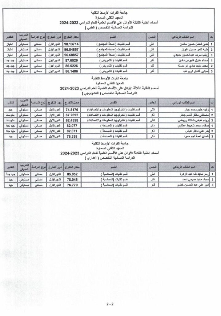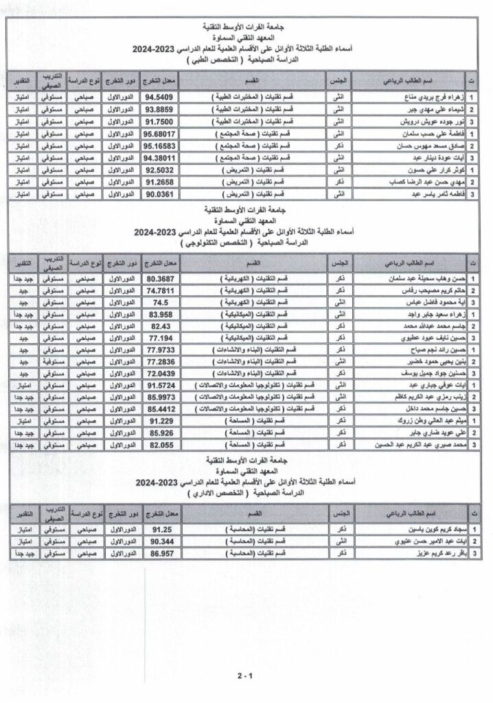 الطلبة الاوائل 2023-2024
