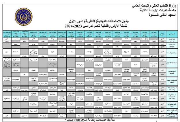 جدول الامتحان النهائي سنة 2023-2024