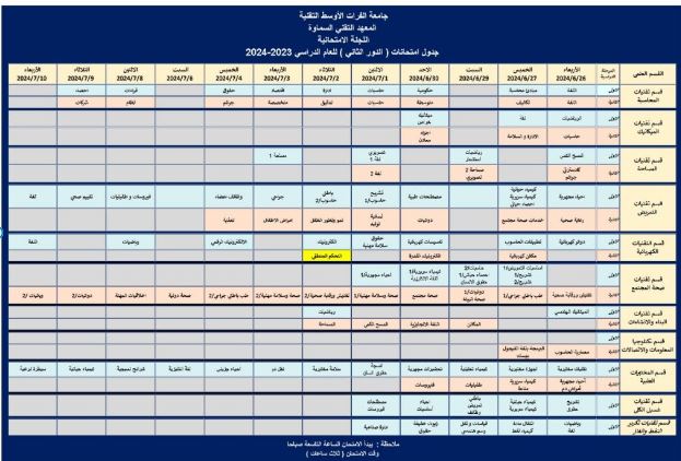 الجداول الامتحانية